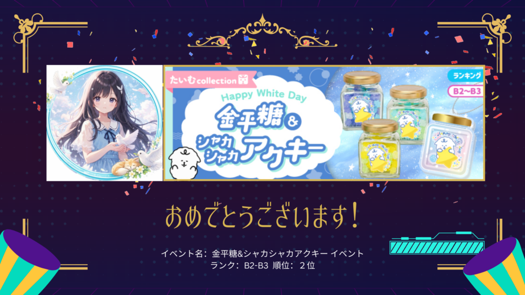 【Palmu】金平糖&シャカシャカアクキー イベント 入賞